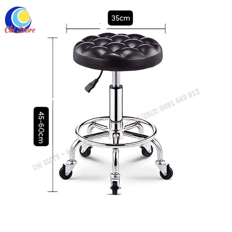 Ghế Xoay Spa Có Múi Nâng Hạ Xoay 360 Độ, Ghế Phun Xăm Chân Inox Tĩnh Điện