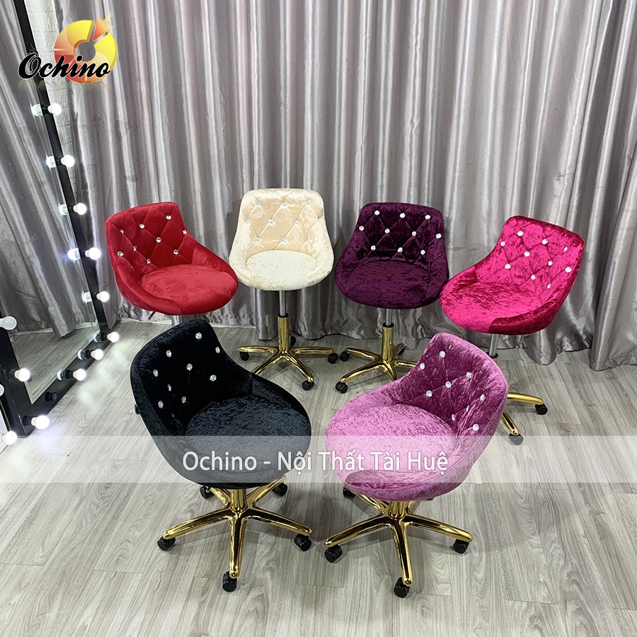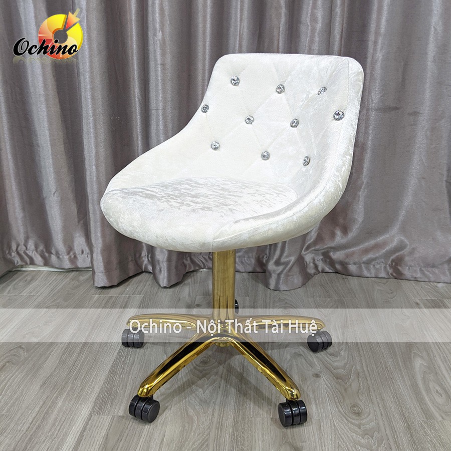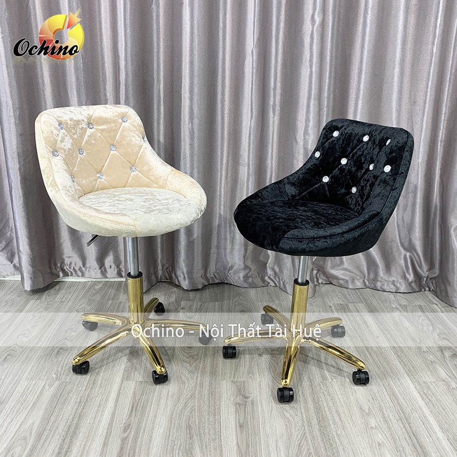 Ghế Xoay Trang Điểm Chân Vàng sang chảnh, Ghế ngồi học bọc nỉ dày đẹp cao cấp ( hình thật shop chụp)