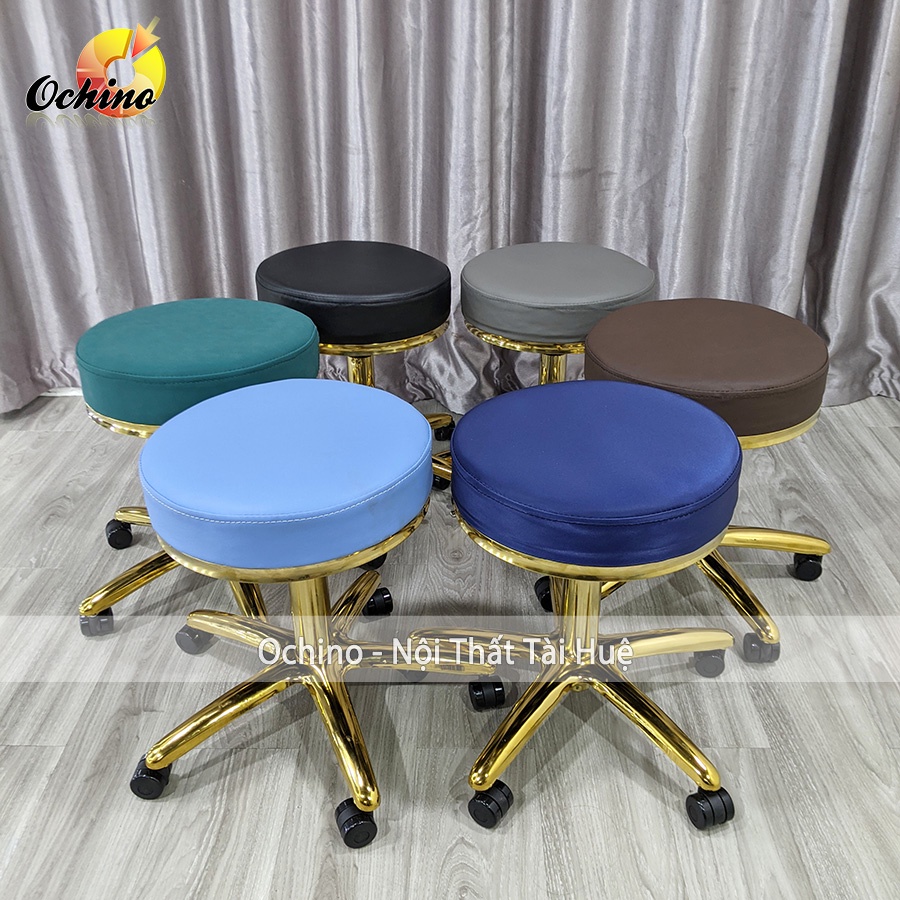 Ghế Xoay Trang Điểm, Ghế spa Phun săm bọc da chân vàng cao cấp ( hình thật shop chụp)