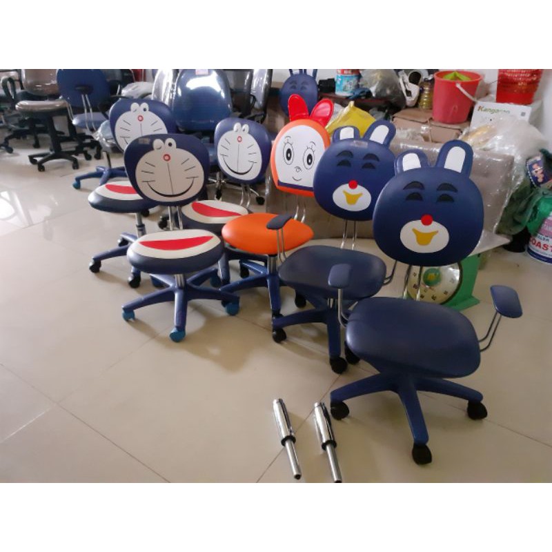 - Ghế xoay trẻ em, chân nhựa màu, đệm, tựa PVC in hình mèo máy Đôremon, Đôremi, Thỏ có tay...kích thích sự thích thú chăm chỉ vào bàn để học tập của các bé.- Kích thước: W 420 x D 520 x H 785÷910 (mm).
