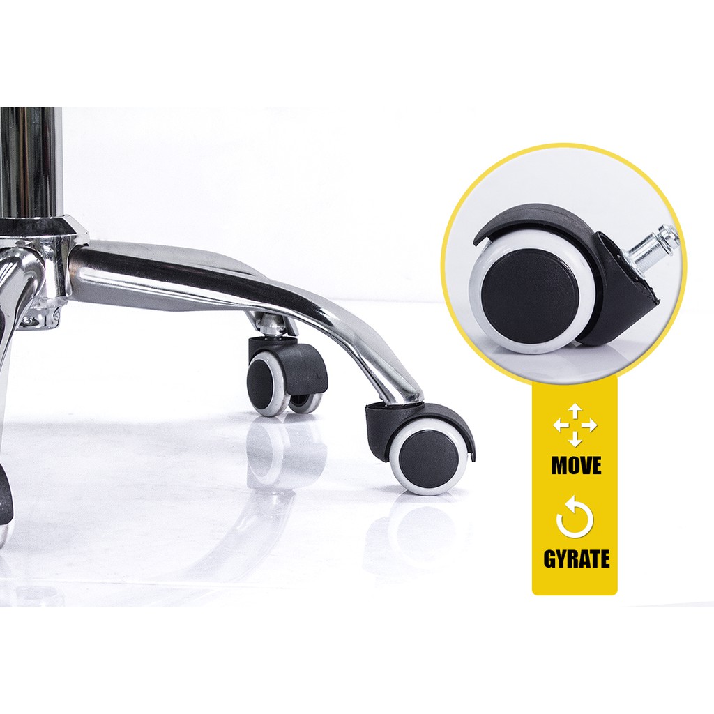 - Bánh xe xoay 360 độ, bọc nhựa PU, di chuyển đa mặt sàn, không gây tiếng động