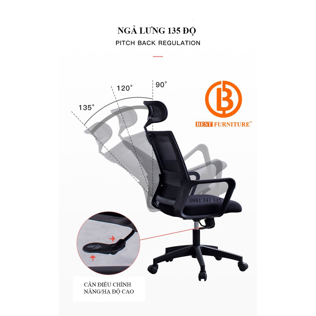 Ghế xoay văn phòng cao cấp Best Office Model 2020 - Lưng lưới thoáng mát - sạch khuẩn