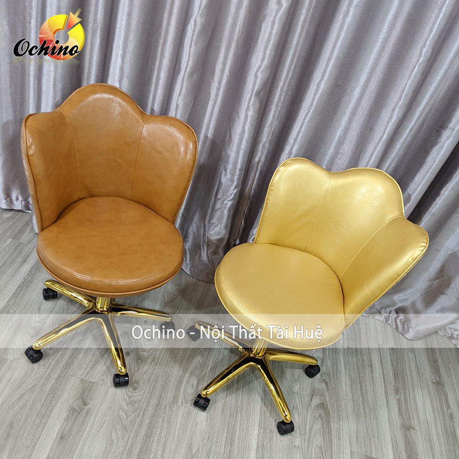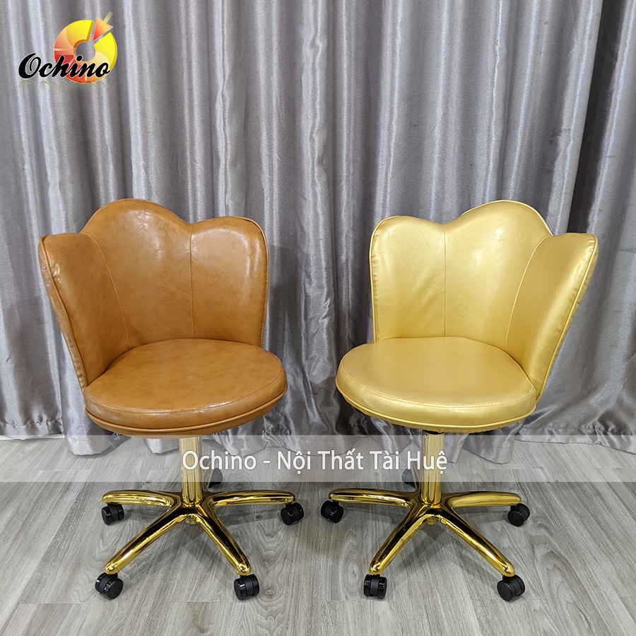 Ghế Xoay Văn Phòng Cao Cấp, Ghế Bánh Xe Trang Điểm Cánh Sen Chân Vàng (Ảnh Thật Và Video)