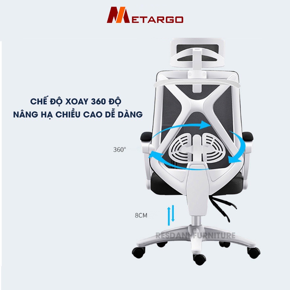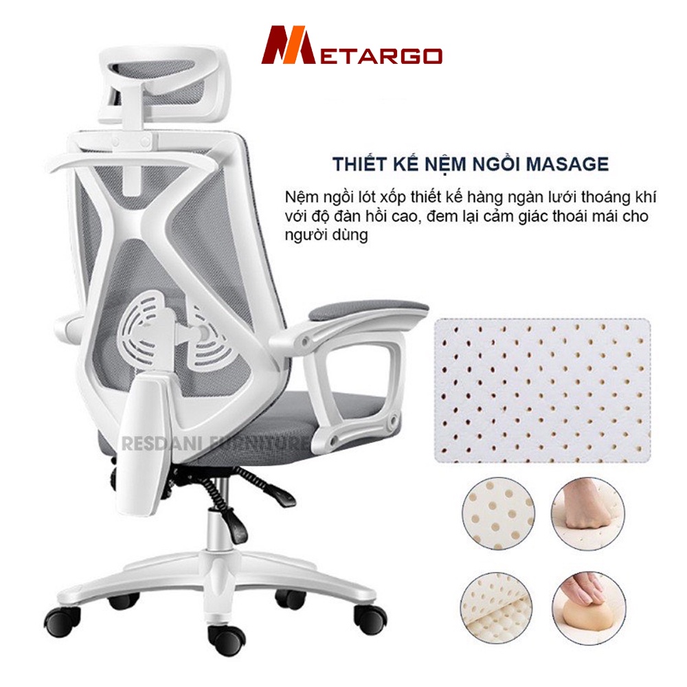 - Dễ dàng thay đổi chiều cao ghế, thay đổi chiều cao, góc nghiêng gối tựa đầu