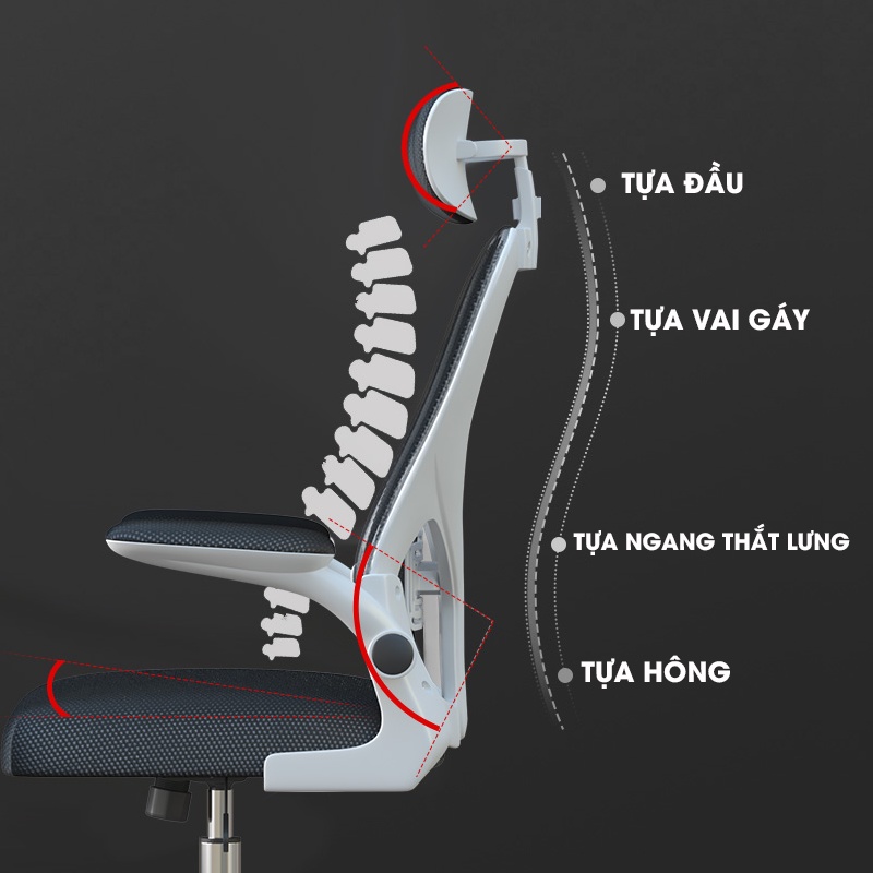 Ghế xoay văn phòng công thái học đa điểm tựa chống mỏi bọc đệm 7cm phủ vải lưới thoáng khí noithatcaocap86