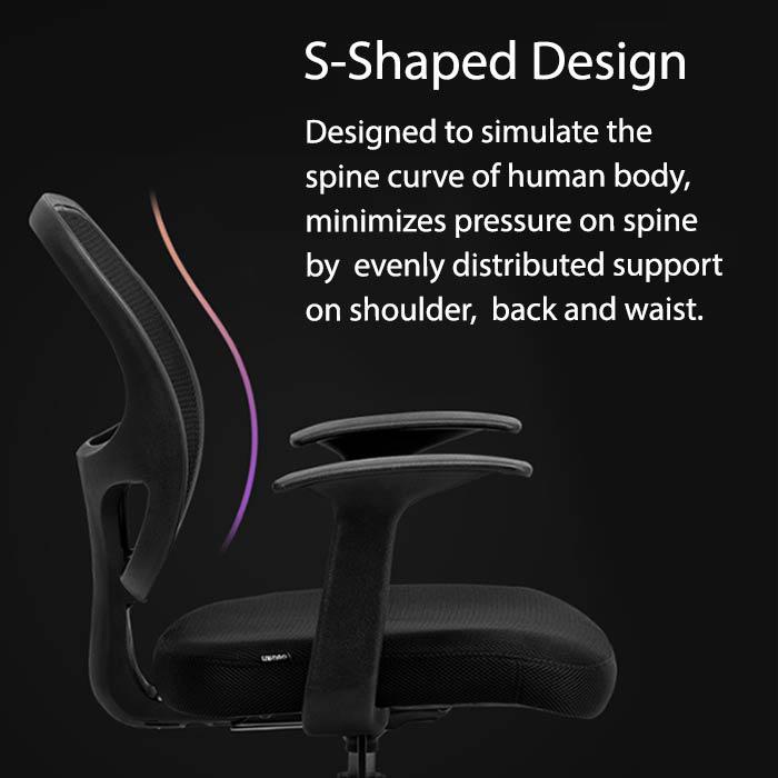 - Giảm đau lưng: Tựa lưng hình chữ S được thiết kế để mô phỏng đường cong cột sống của cơ thể con người, giảm thiểu áp lực lên cột sống.