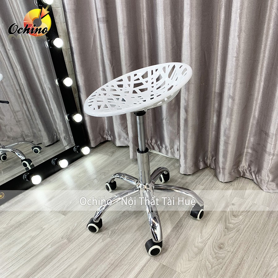 Ghế Xoay Văn Phòng. Ghế Bánh Xe Trang Điểm Xoay Mặt Mặt Nhựa Lưới Hiện Đại Điểu Chỉnh Độ Cao 45 Đến 55 Và Xoay 360 Độ ( Hàng Có Sẵn)⚠️Lưu ý Ghế xoay spa nhà Huệ khá cồng kềnh các bạn nên đặt tối đa 2 cái 1 đơn