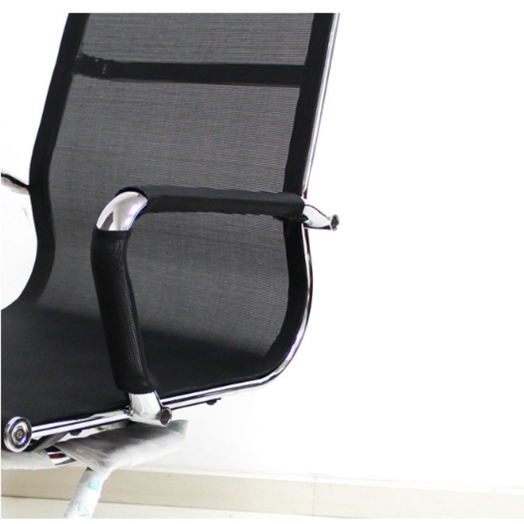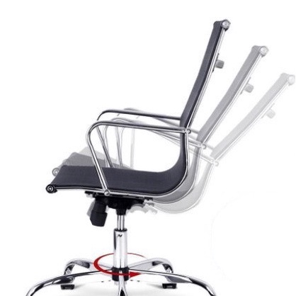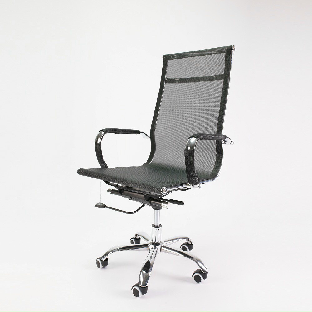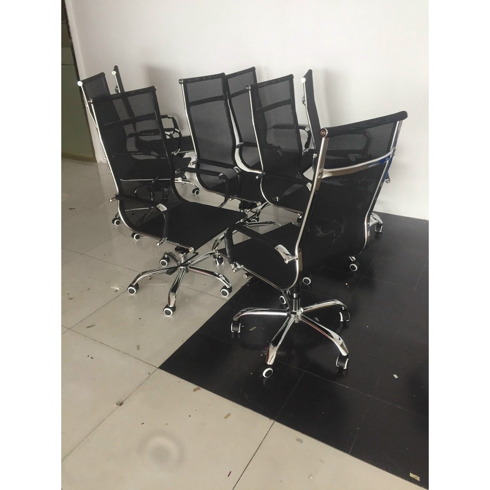 + Ghế mặt lưới kết hợp chân kim loại mạ Crome sáng bóng có bánh lăn.