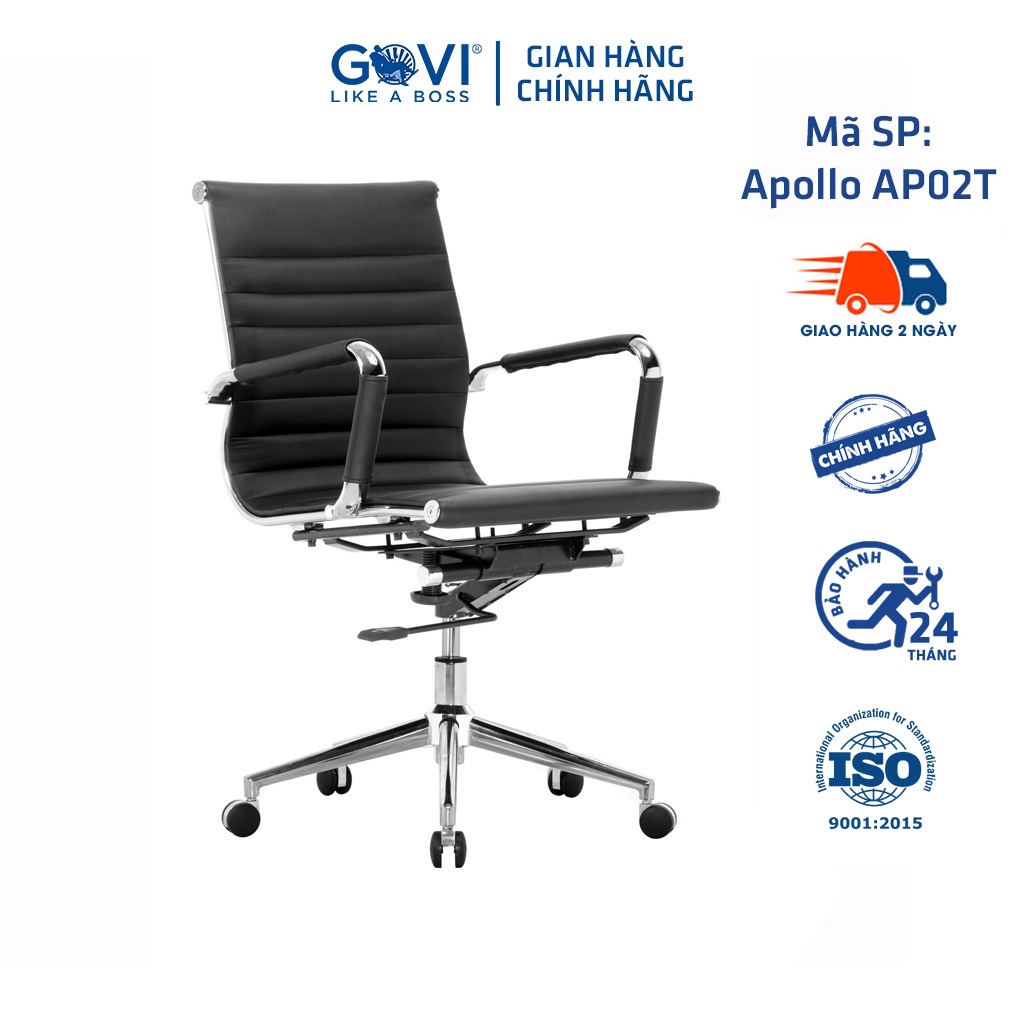 Ghế xoay văn phòng GOVI Apollo AP02T Da simili lưng thấp - Điều chỉnh chiều cao 90-99cm, ngả lưng ghế lên đến 45 độ
