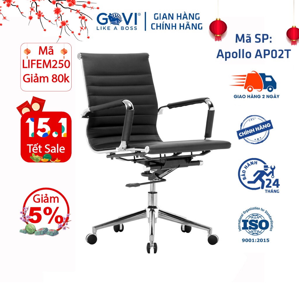 Nhà cửa & Đời sống > Nội thất > Ghế, ghế dài, ghế đẩu || Ghế xoay văn phòng GOVI Apollo AP02T Da simili lưng thấpCòn hàng