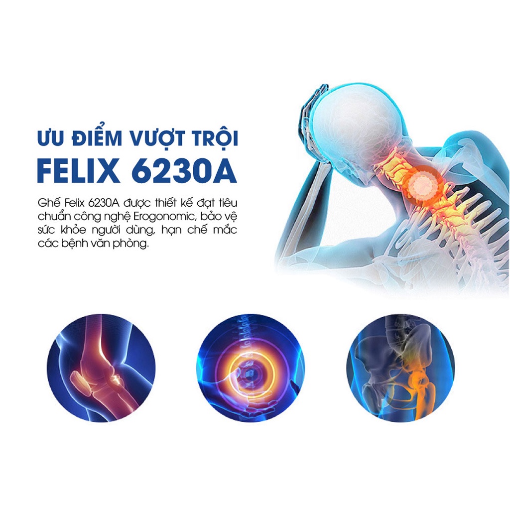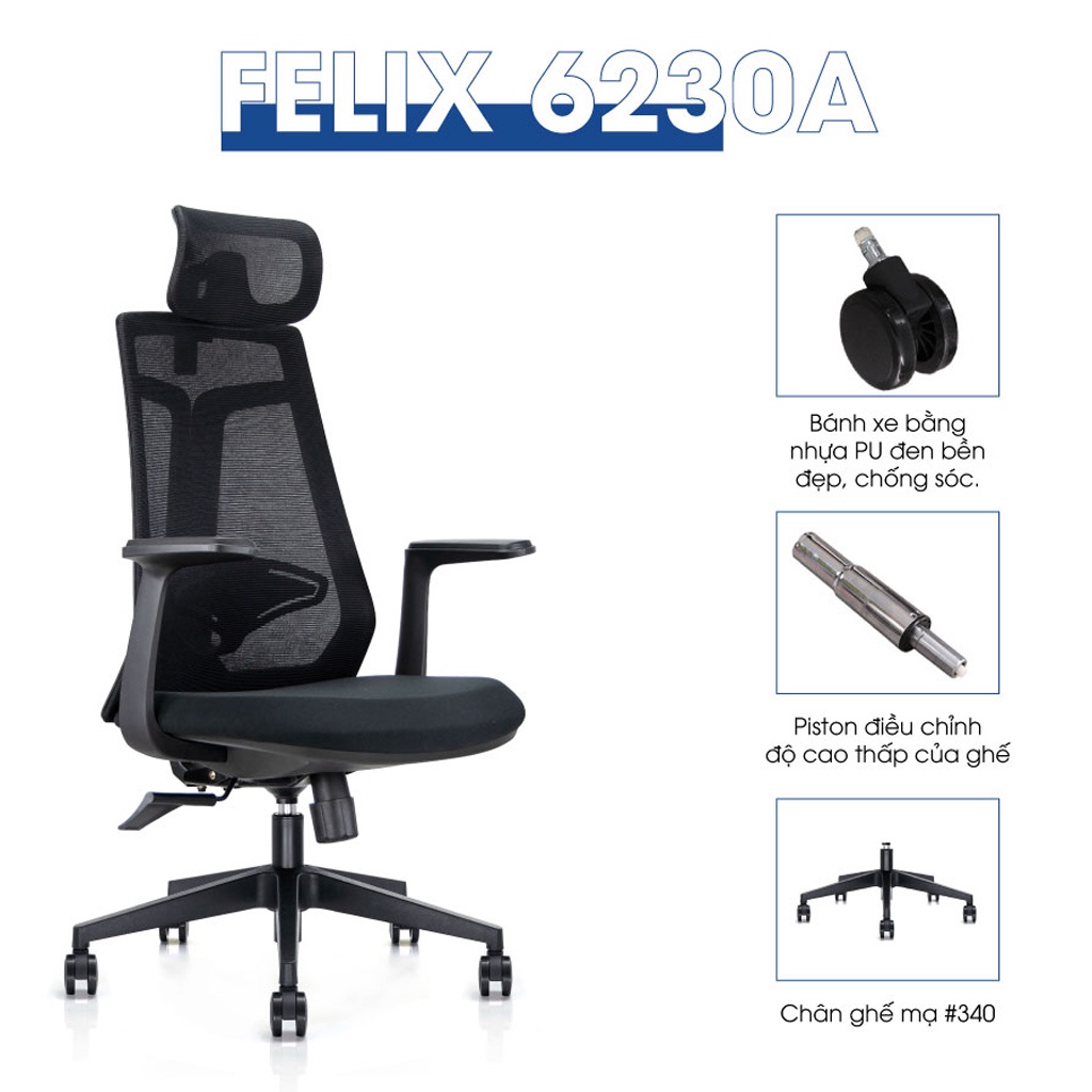 Giới thiệu Ghế xoay văn phòng công thái học GOVI Felix F6230A - Tựa đầu điều chỉnh, tựa tay cố định