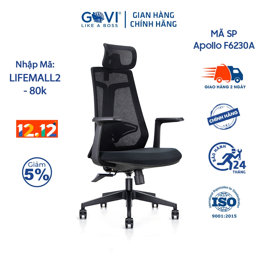 Nhà cửa & Đời sống > Nội thất > Ghế, ghế dài, ghế đẩu || [Mã LIFEMALL2503 giảm 15% đơn 99K] Ghế xoay văn phòng GOVI Felix F6230A tựa đầuCòn hàng