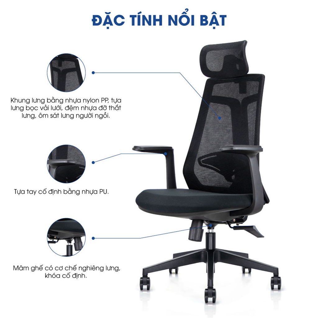 Chất liệu : Vải lưới nhập khẩu, Nệm mouse bọc vải