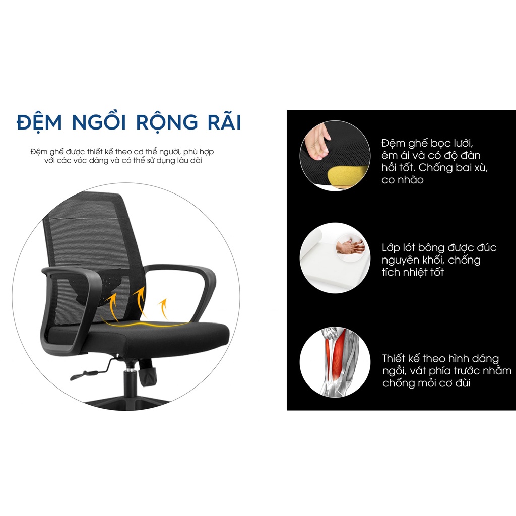+ Mâm ghế có cơ chế ngả sau, khóa cố định 1 vị trí