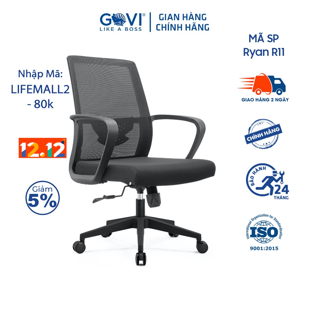 Nhà cửa & Đời sống > Nội thất > Ghế, ghế dài, ghế đẩu || Ghế xoay văn phòng GOVI Ryan R11 Ghế làm việc lưng lướiCòn hàng