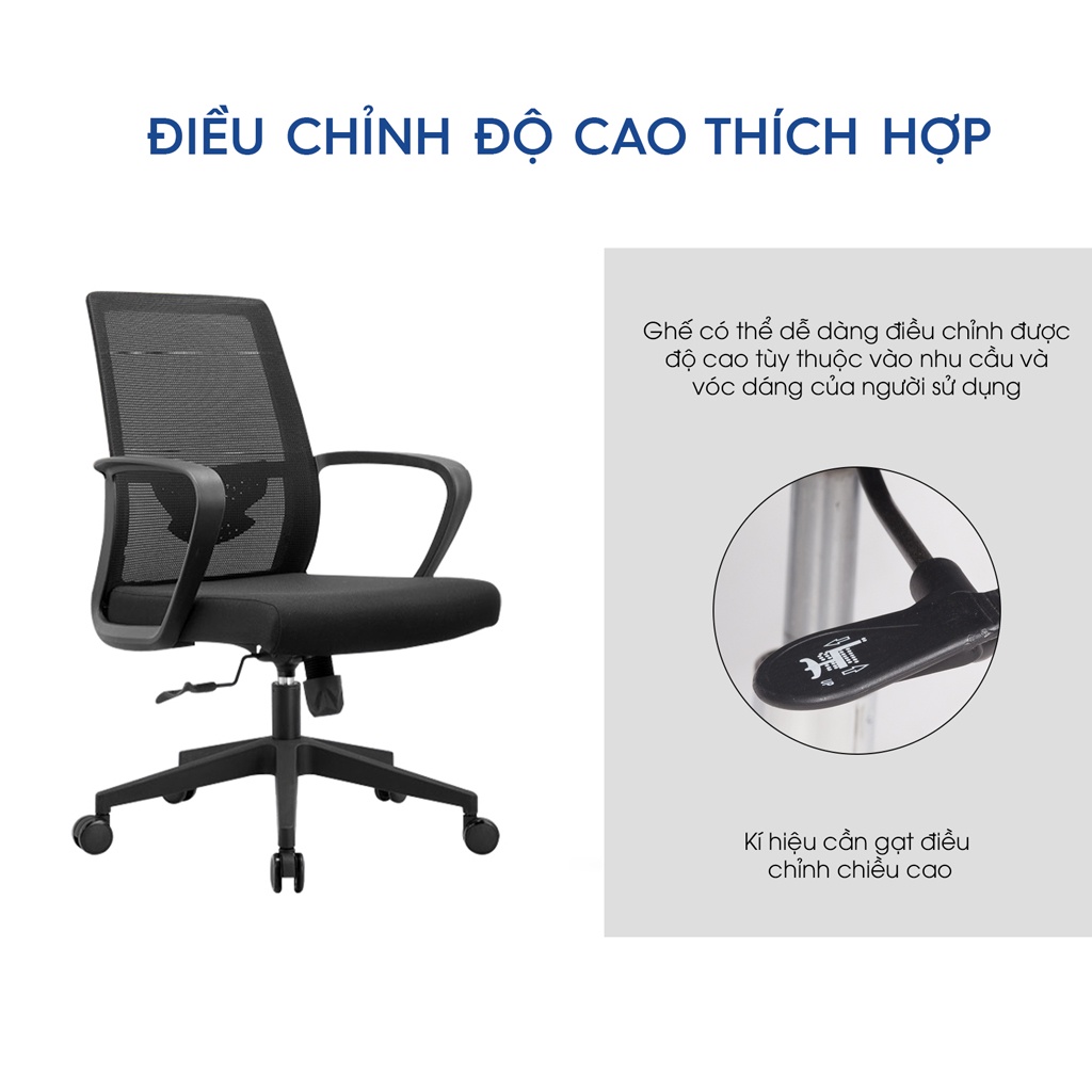 + Piston điều chỉnh độ cao thấp của ghế, đạt tiêu chuẩn BIFMA của Mỹ.