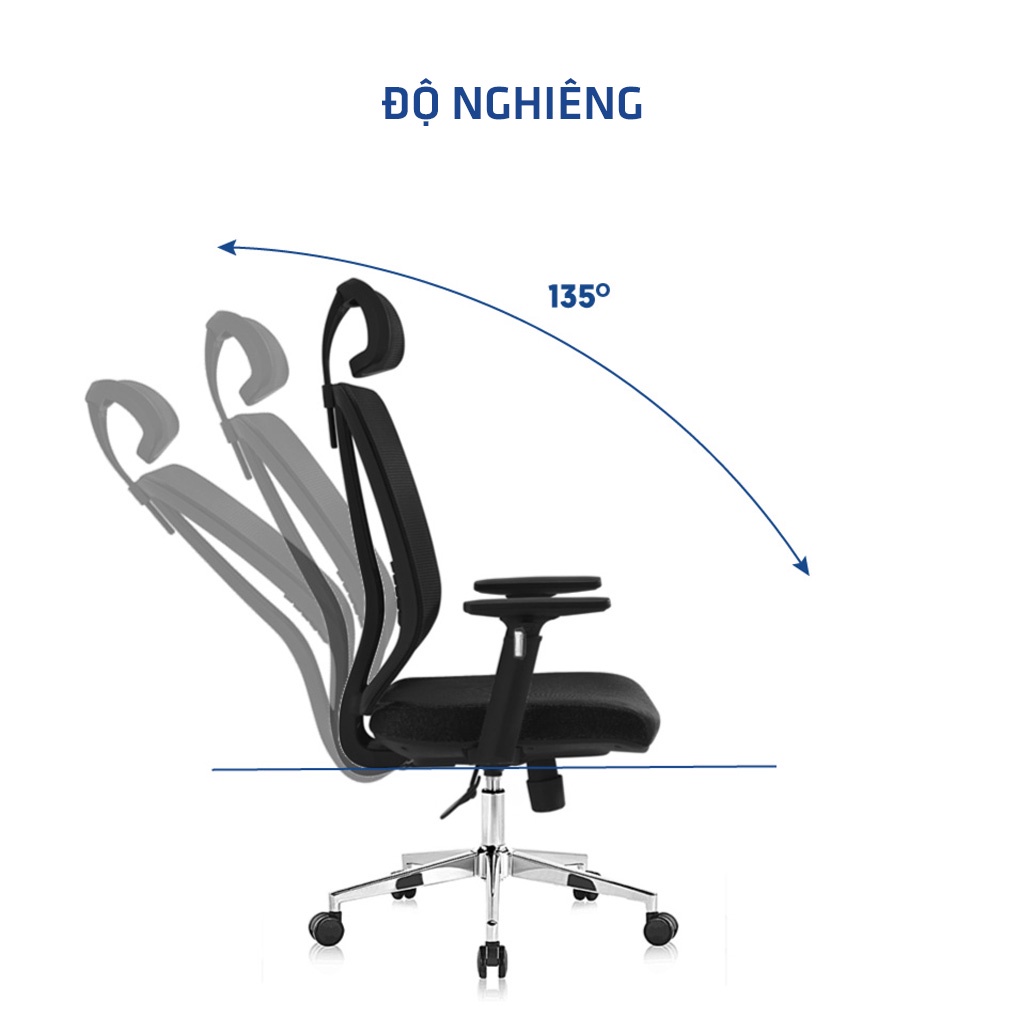 + Tựa đầu bằng vải lưới thoáng mát, điều chỉnh độ cao, xoay góc phù hợp với người ngồi.