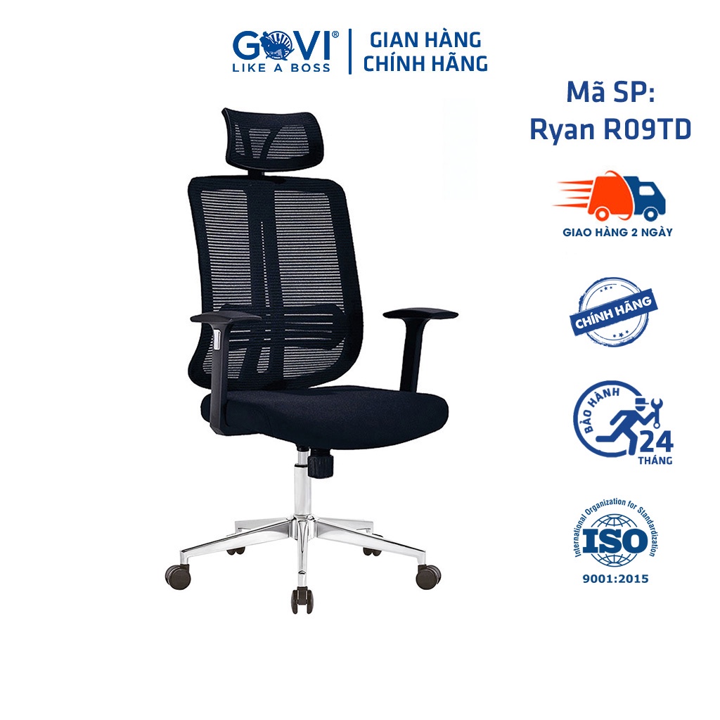Ghế xoay văn phòng công thái học GOVI Ryan R09TD-Thiết kế tựa đầu điều chỉnh, tựa tay cố định, mâm ghế ngả sau khóa ngả