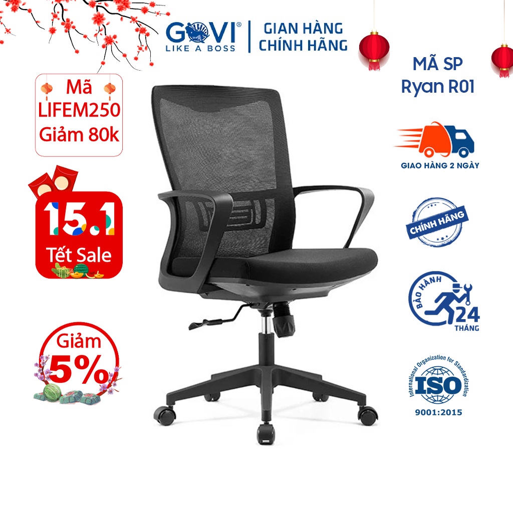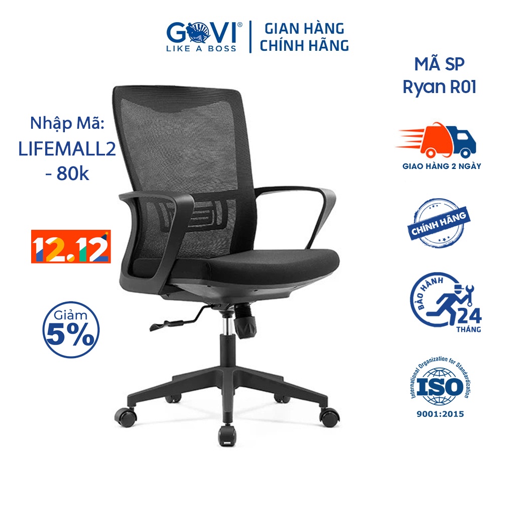 Nhà cửa & Đời sống > Nội thất > Ghế, ghế dài, ghế đẩu || Ghế xoay văn phòng GOVI Ryan R01 Thiết kế hỗ trợ người dùngCòn hàng
