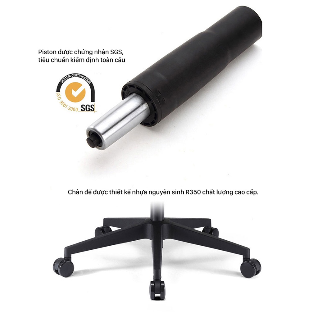 Thiết kế đạt tiêu chuẩn Ergonomic – bảo vệ sức khỏe người dùng, hạn chế mắc các bệnh văn phòng. Ghế xoay lưng da tạo cả giác êm ái, thoải mái cho người ngồi, giúp nâng cao năng suất công việc.