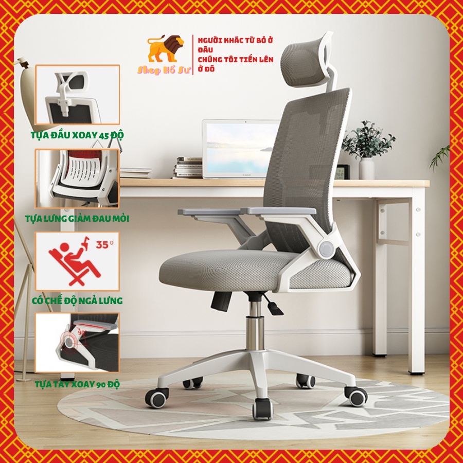 Ghế Xoay Văn Phòng Lưới Có Ngả Lưng Tựa Đầu Thoáng Khí Đệm Dày 6cm Công Thái Học Kiểu Dáng Thanh Mảnh Hiện Đại Chịu Lực