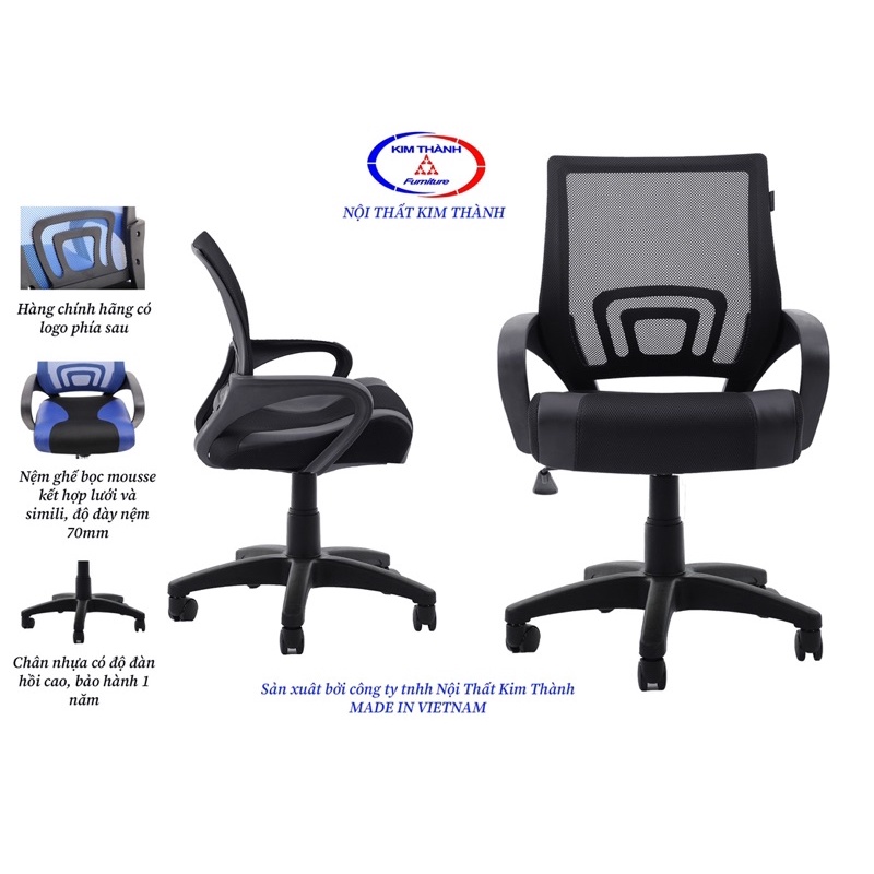 Ghế lưới nhân viên với phần khung ghế làm bằng nhựa cứng cáp, có thiết kế rộng rãi giúp nâng đỡ toàn bộ cột sống của người sử dụng, đảm bảo an toàn và tránh bị đau lưng khi tựa. Ghế chịu được trọng lượng cao mà vẫn đảm bảo được độ bền qua thời gian sử dụng.Tay vịn, bánh xe chắc chắn cùng bề mặt bằng lưới thoáng mát.