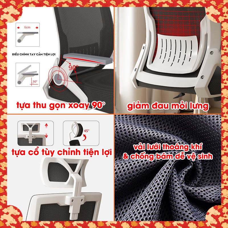 Nhà cửa & Đời sống > Nội thất > Ghế, ghế dài, ghế đẩu || Ghế Xoay Văn Phòng Lưới Có Ngả Lưng Tựa Đầu Thoáng Khí Đệm Dày 6cm Công Thái Học Kiểu Dáng Thanh Mảnh Hiện Đại Chịu_LựcCòn hàng