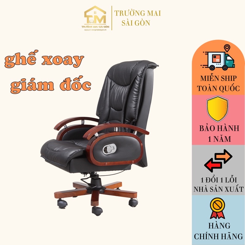 Nhà cửa & Đời sống > Nội thất > Ghế, ghế dài, ghế đẩu || ghế xoay văn phòng tay gỗ sơn PU NHẬP KHẨU cao cấp ngả sâu 160 xoay mình 360 độ hiện đại Trường Mai Sào GònCòn hàng