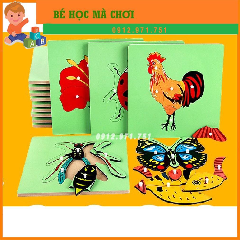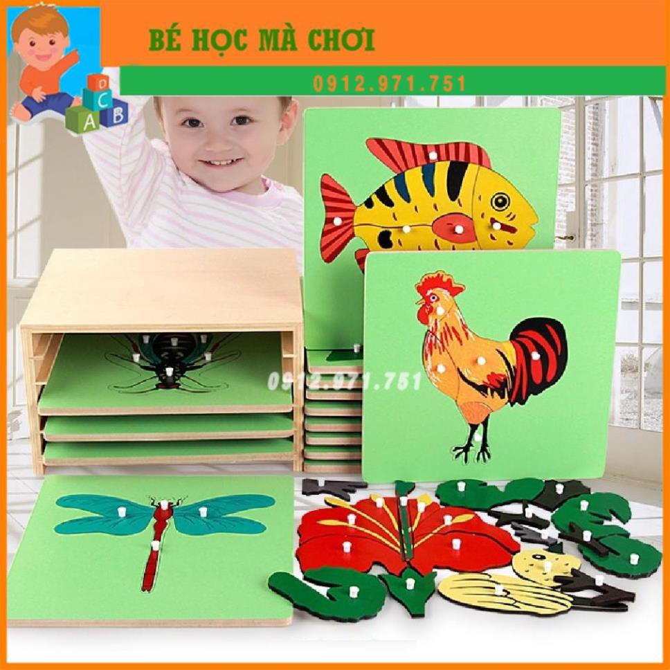 Bộ ghép tranh sinh học động vật và thực vật Montessori Kèm GIÁ KỆ ĐỰNG