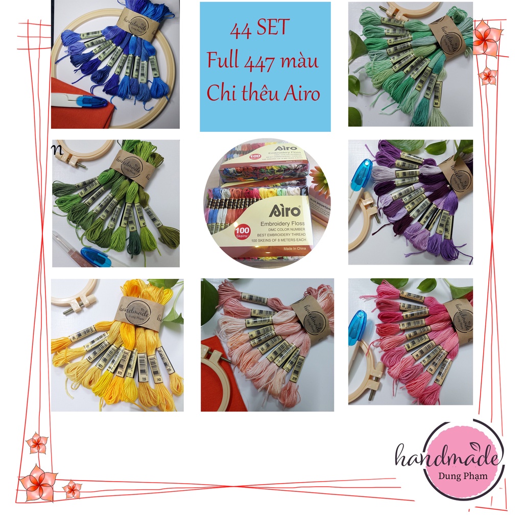 Sở thích & Sưu tầm > Dụng Cụ May Vá || ☘Giá 1k9/ tép☘44 Set chỉ thêu Airo full 447 màu/ chỉ thêu cotton thêu tranh chữ thập, thêu trang phụcCòn hàng