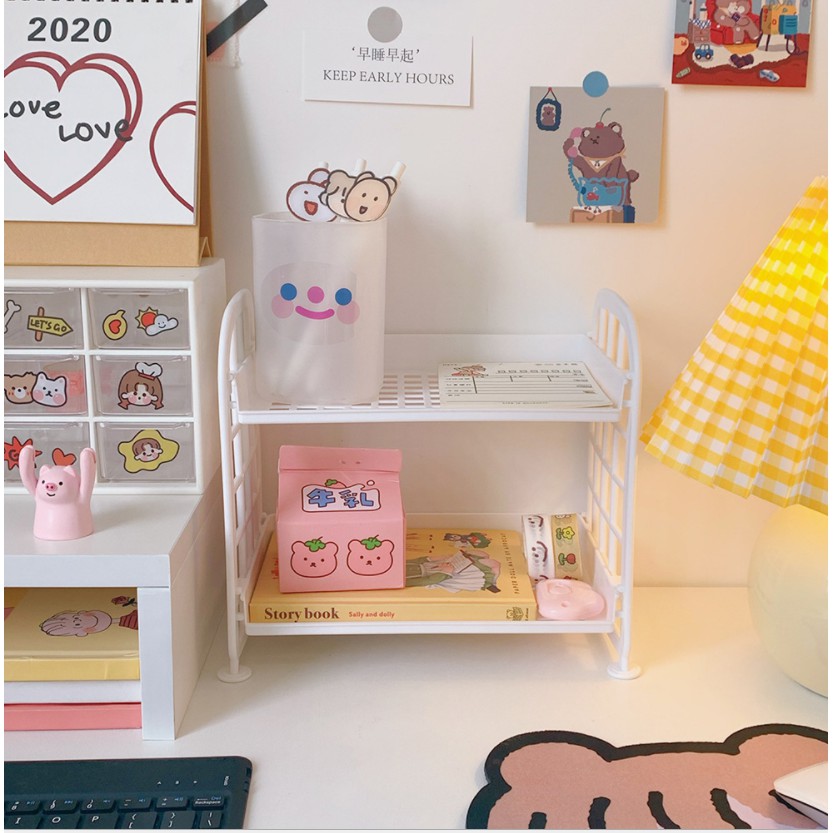 Giá 2 tầng để đồ dùng học sinh, mỹ phẩm cỡ lớn - đồ trang trí bàn xinh tạo cảm hứng học tập, làm việc