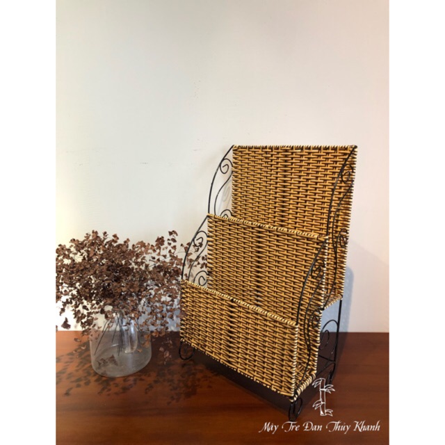 Giá báo giá sách nhựa giả mây 2 tầng được làm bằng nhựa giả mây đan khung sắt vô cùng chắc chắn và đẹp mắt.Sản phẩm có kích thước: cao 50cm ngang 35cm