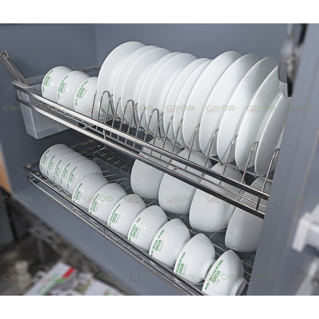 Giới thiệu Giá Bát Đĩa Cố Định Nan Dẹt 2 tầng Inox SUS304 GROB-Hàng chính hàng_Bảo hành INOX trọn đời