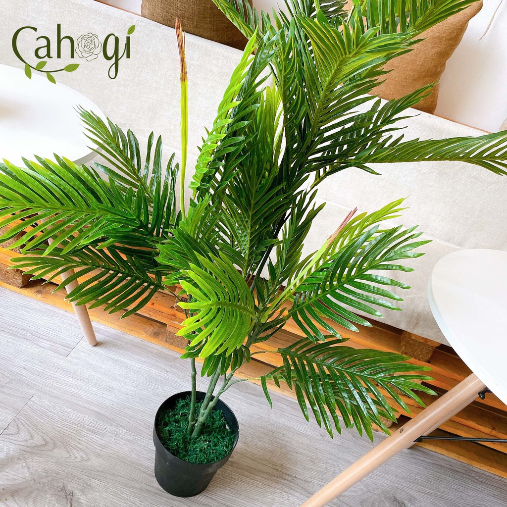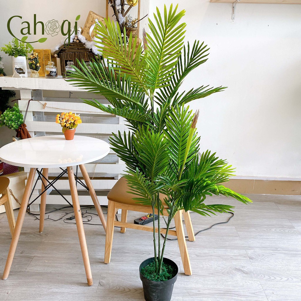 Kích Thước: Chiều cao tổng thể 1m3-1m4.Chất liệu: Thân cây lõi thép bọc nhựa . Lá cây : lá nhựa