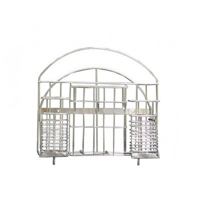 Giá cài dao thớt loại 1 thớt, có kèm giỏ đựng đũa, thìa, dĩa. Sản phẩm thiết kế có thể treo tường hoặc để trên mặt bàn đá, tuy nhiên nếu để trên mặt bàn đá sẽ tiện dụng hơn. Toàn bộ sản phẩm làm bằng chất liệu dây inox 201KT: