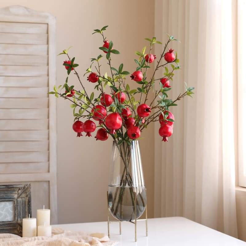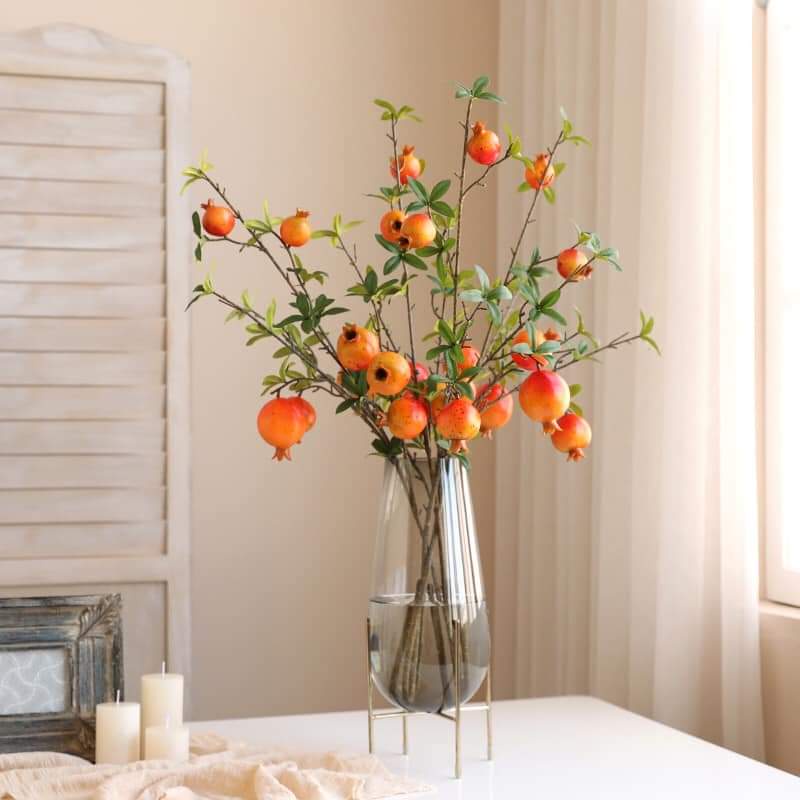 Giới thiệu Quả giả, cành lựu phú quý tài lộc 6 quả cỡ lớn trang trí phòng khách sang trọng QL-06