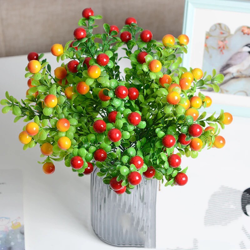 Cây Giả, Cành Quả Chery Tuyệt Đẹp Trang Trí Nhà Cửa Cành Cao 35cm Chưa Kèm Chậu