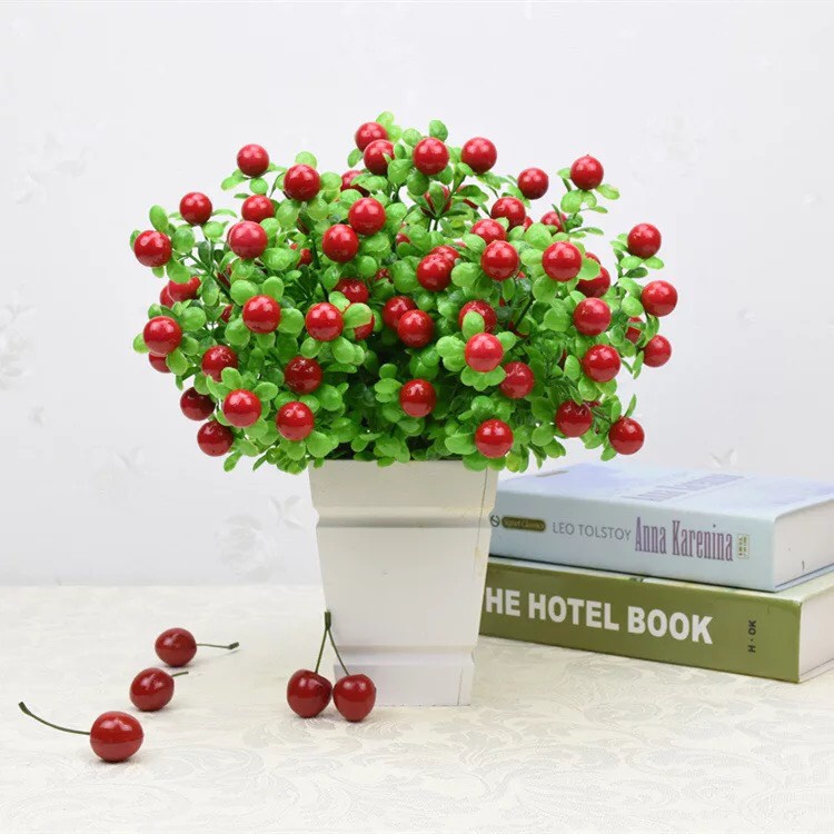 Giới thiệu Cây Giả, Cành Quả Chery Tuyệt Đẹp Trang Trí Nhà Cửa Cành Cao 35cm Chưa Kèm Chậu