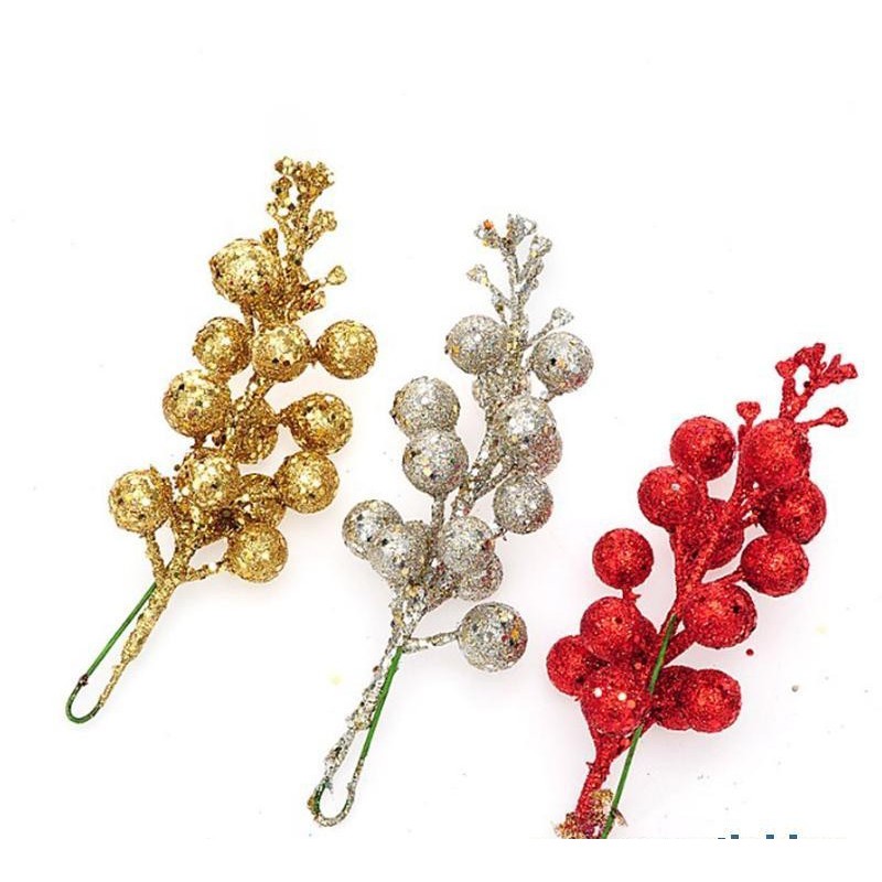 Quả giả, cành quả đào đông nhũ kim tuyến trang trí điểm bình hoa, kết vòng hoa nguyệt quế