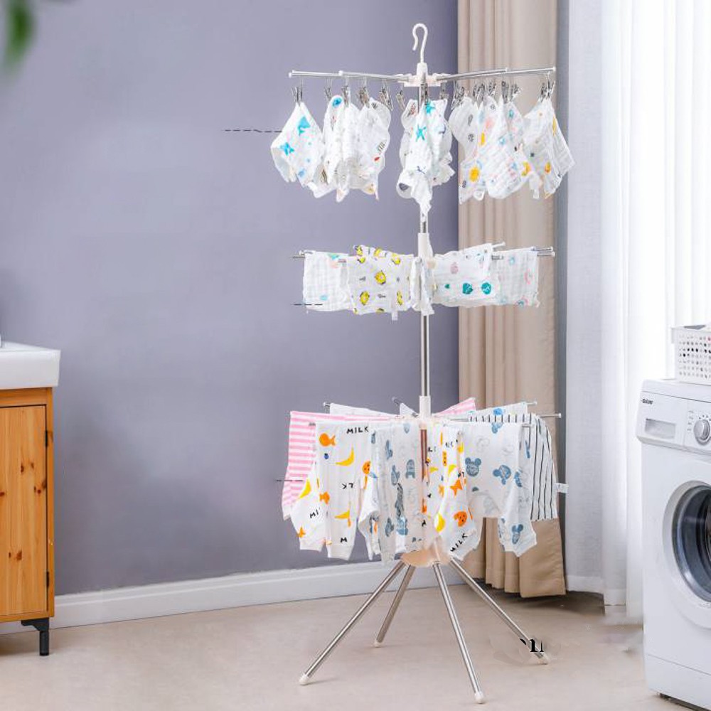 Giới thiệu Giá Cây Phơi Đồ Inox Đa Năng Treo Đồ Cho Bé Quay 360 Loại 3 Tầng - SP000775