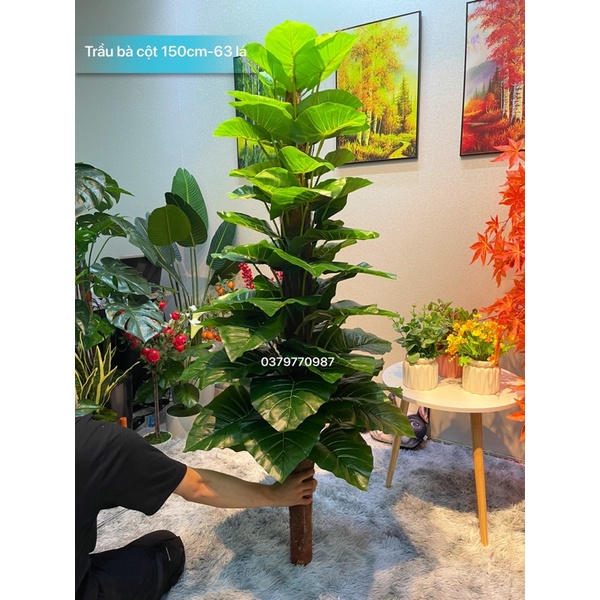 Cây giả- Cây trầu bà giả cao cấp ( ảnh thật shop tự chụp có video)- Kích thước: chiều cao : loại 150cm gồm 63 lá
