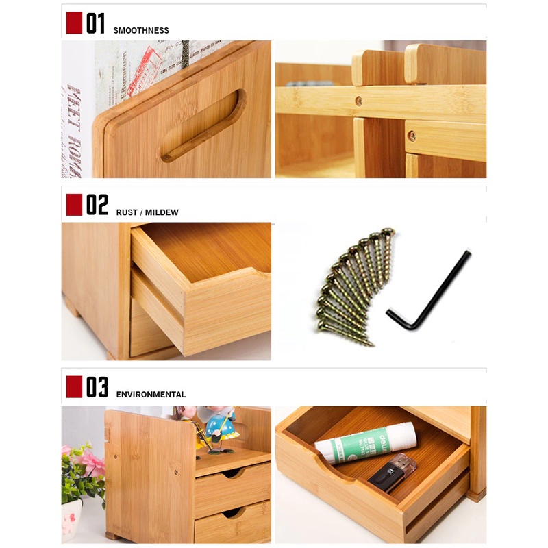 + Kệ chặn sách co giãn được làm bằng gỗ tre ép chắc chắn với công nghệ tiên tiến, các góc cạnh nhẵn bóng chống trầy xước và chống vết nứt.