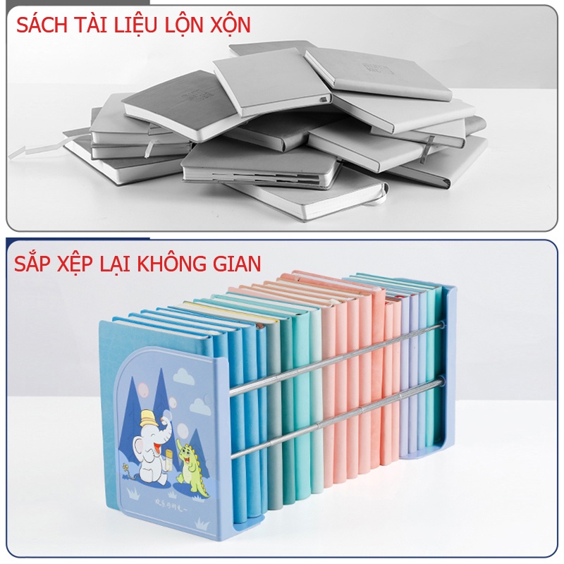 Giá chặn sách để bàn co giãn kệ chặn sách nhựa 3 ngăn MPrince BKD901