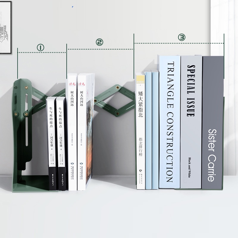 Giá chặn sách kim loại kệ chặn sách để bàn co giãn 3 ngăn Liwen✪ Giới thiệu sản phẩm :