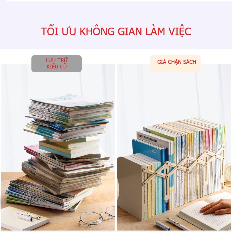 + Giá chặn sách bao gồm 3 ngăn có độ ổn định hoàn hảo và không bị nghiêng ngay cả khi đặt sách ở một ngăn bất kì.