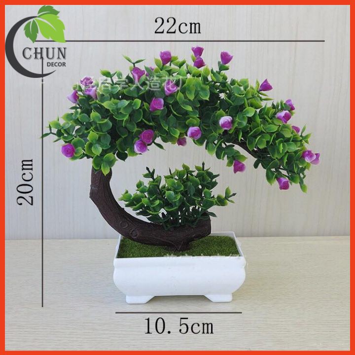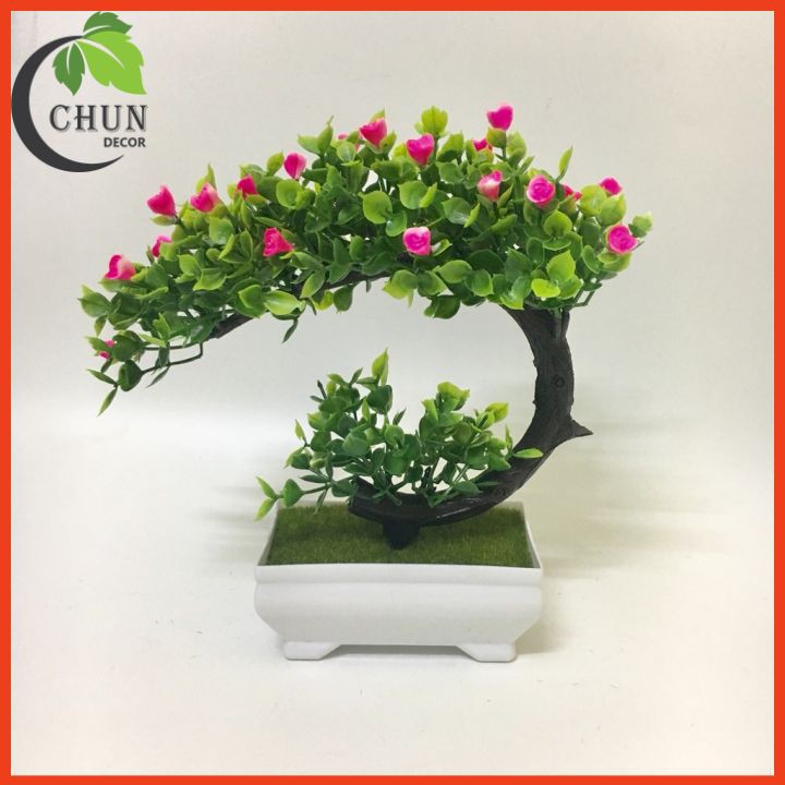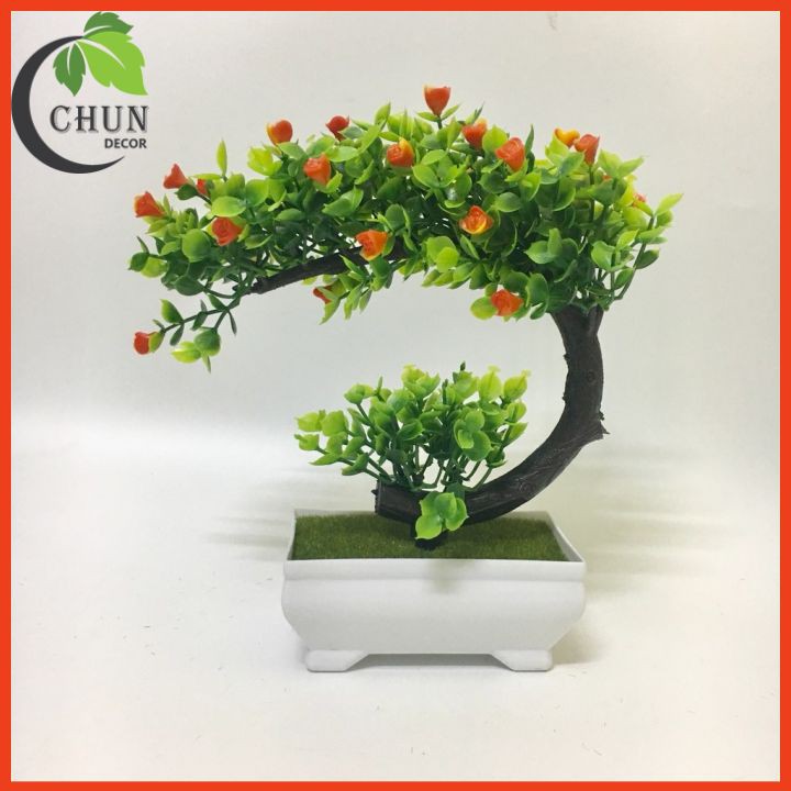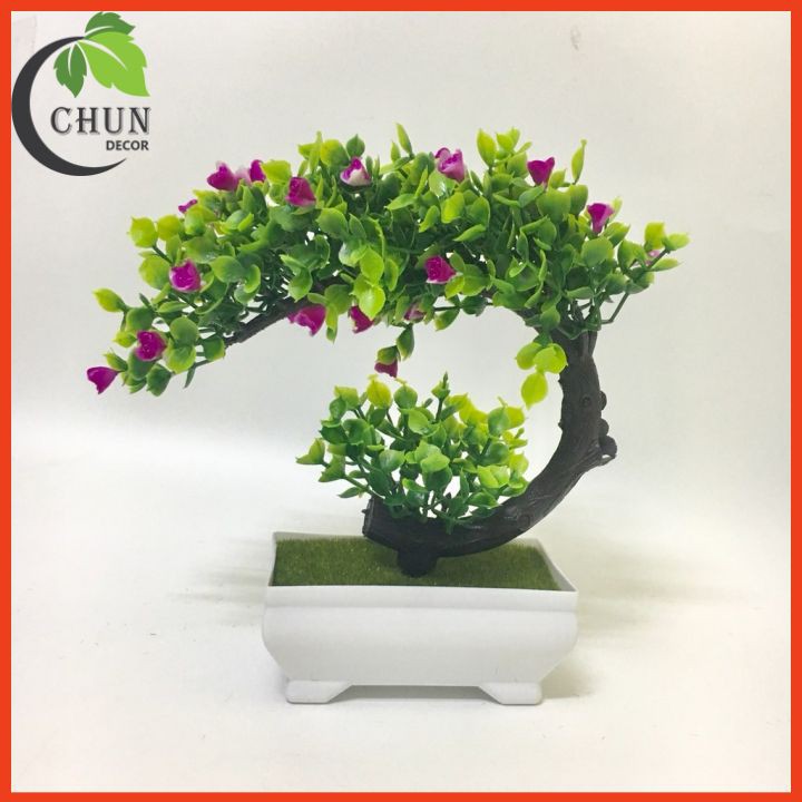 - Chất liệu: chậu nhựa được phủ cỏ xanh, cây bon sai làm từ nhựa chuyên dụng cao cấp, lá mềm mại, hoa màu sắc nét, sinh động