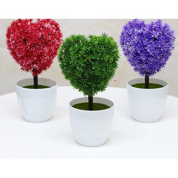 Cây giả, chậu cây cảnh hình trái tim để bàn, trang trí kệ tủ, giá sách cực xinh, làm quà tặng ý nghĩa