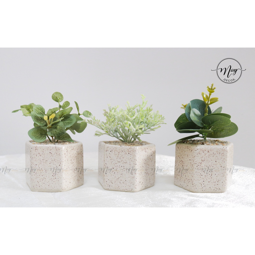 Set chậu cây giả để bàn xinh xắn,Sản phẩm bao gồm cây kèm chậu pủ sỏi bề mặt trông giống như cây thật