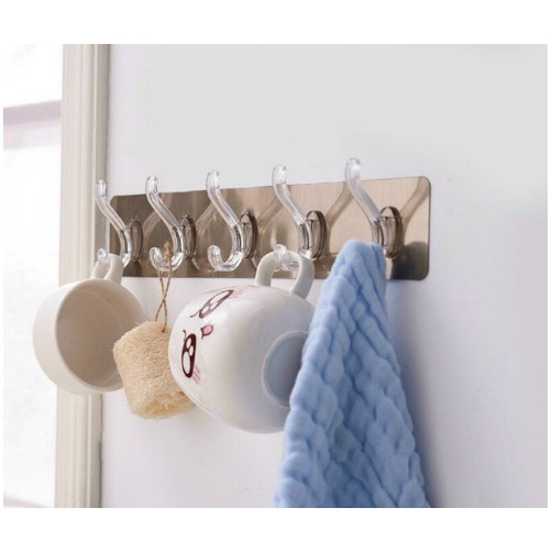 Gía cheo đồ dán tường loại 3 móc , 5 móc không cần khoan đục