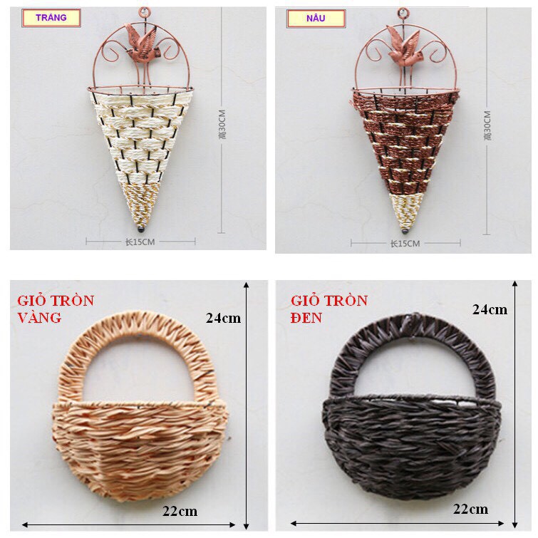 - Giỏ treo shop có 2 loại: giỏ mây tròn và giỏ tam giác đan sợi cói